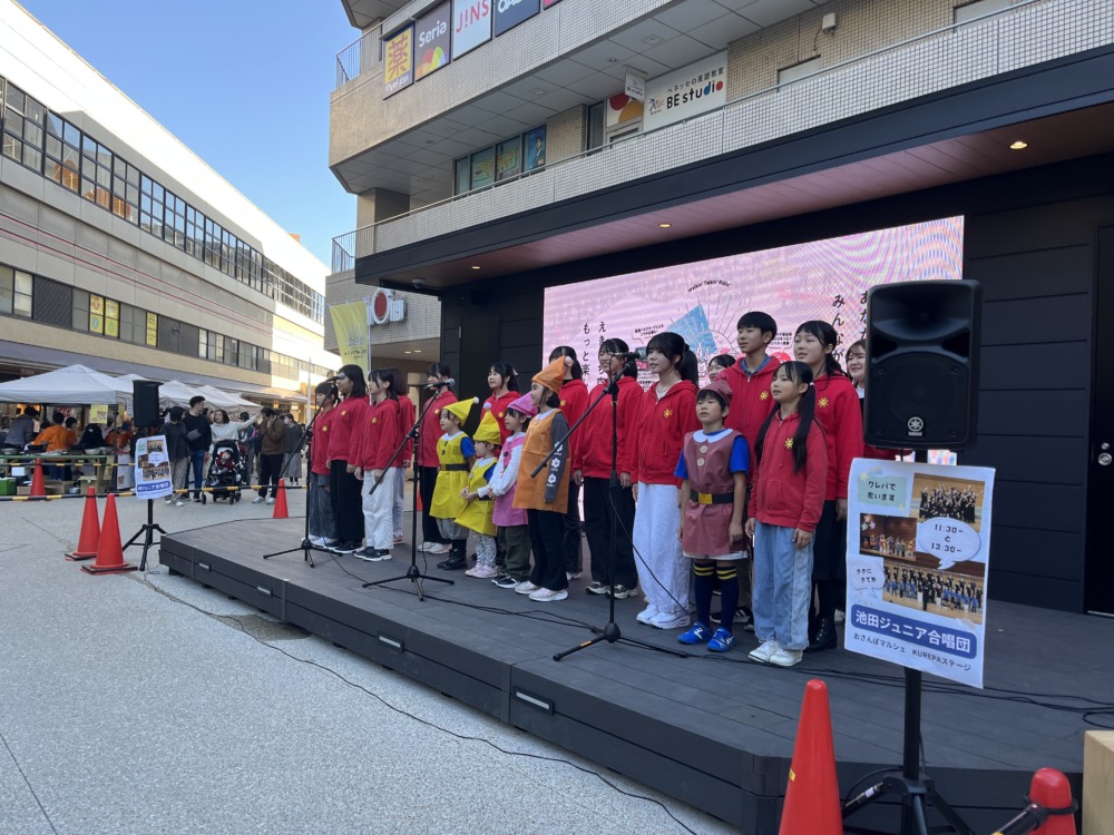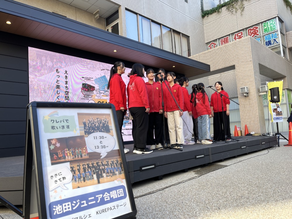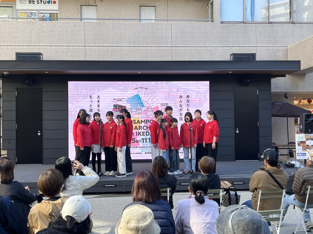 池田駅前に新しくできた広場で歌いました!
